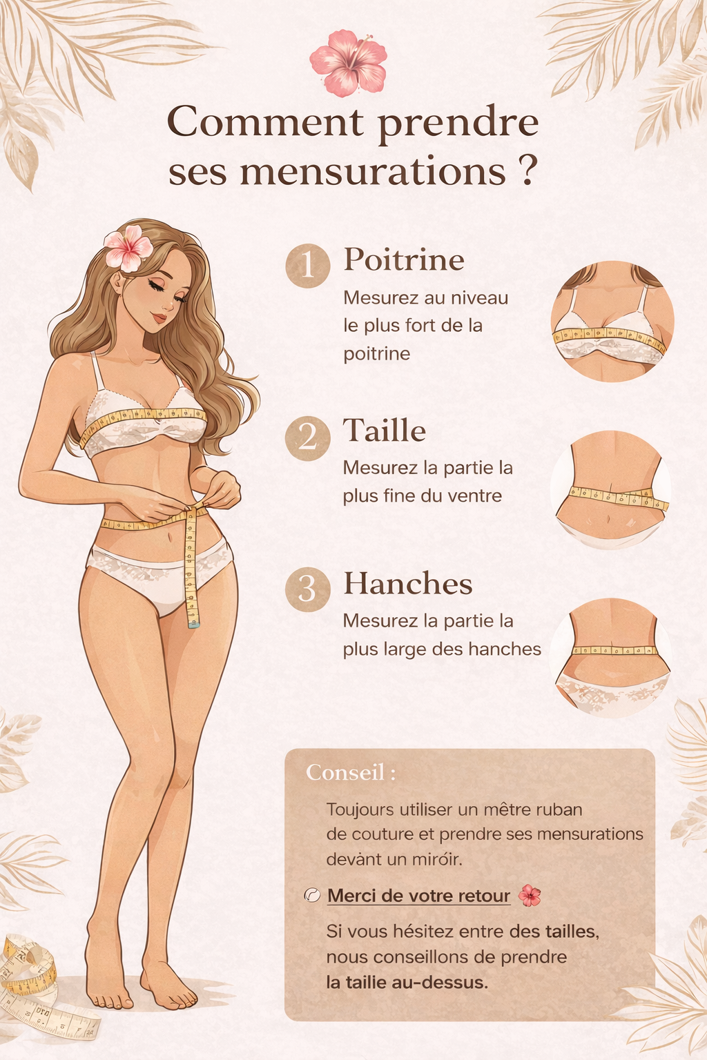 Pour choisir la taille la plus adaptée, prenez vos mensurations à l’aide d’un mètre ruban, de préférence devant un miroir.